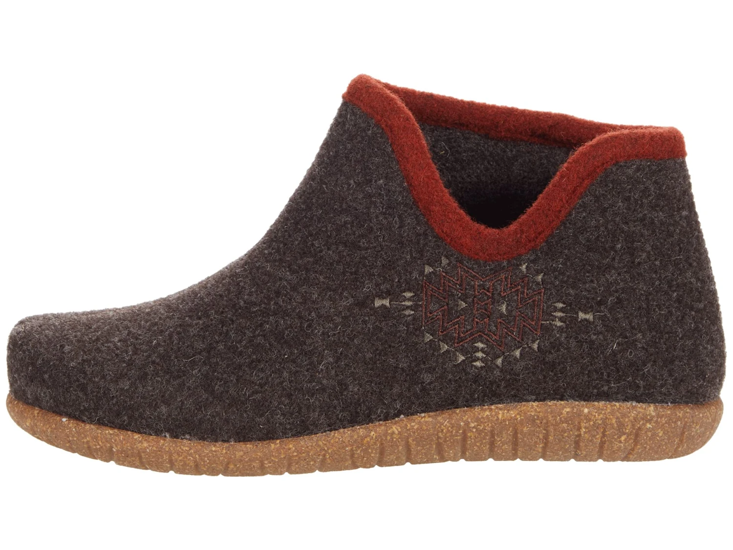 - Pull-on design with closed rounded toe and flexible, shock-absorbing rubber and cork sole.